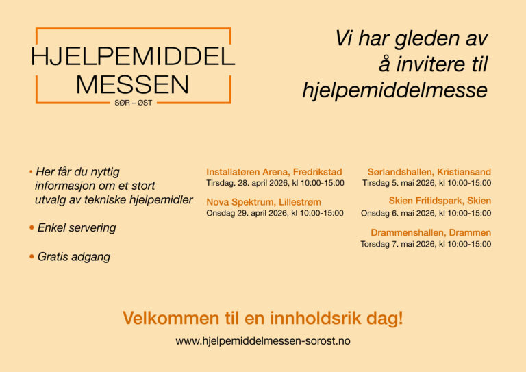 Her finner du mer informasjon om Hjelpemiddelmesse for Oslo, Akershus, Buskerud, Vestfold, Telemark, Agder og Østfold